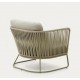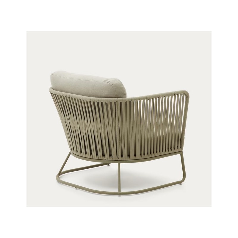 Das Seilgeflecht der Armlehnen und der Rückenlehne mildert das Gesamtbild und sorgt für eine perfekte Balance zwischen Modernität und Geselligkeit.