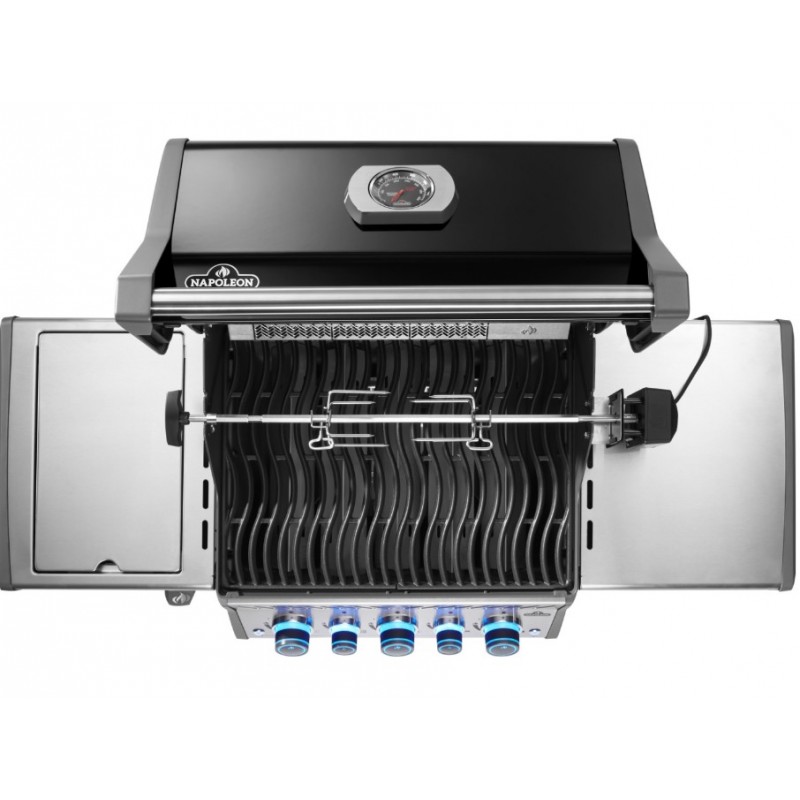Der Napoleon Rogue® PRO 425 RSIB schwarzer Grill mit Infrarot verfügt über Edelstahlroste, eine Jetfire-Zündung und eine klappbare Seitenablage inklusive 1 Infrarot, mit dem Drehspieß ermöglicht er das Kochen von oben.