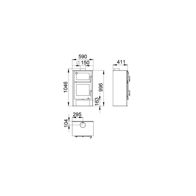 Beheiztes Volumen: 275m3- Wirkungsgrad 80% - Gusseisen-Aschenbechertür und Rost - Kamin aus Gusseisen - Doppelte Verbrennung und sauberes Glassystem - Glaskeramik-Glastür beständig gegen 750 ° C. Ausgestattet mit Backofen und Thermometer.