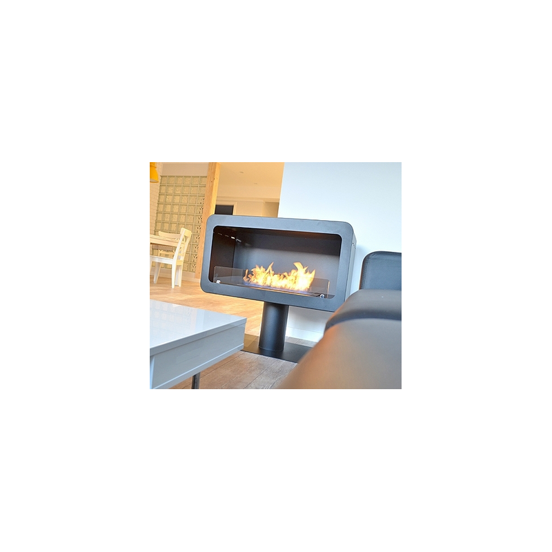 Der Bioethanol-Kamin Inecco Mit 1 Glasscheibe wird auf seinem stabilen Träger installiert, kann aber auch leicht von einem Raum in einen anderen verschoben werden.