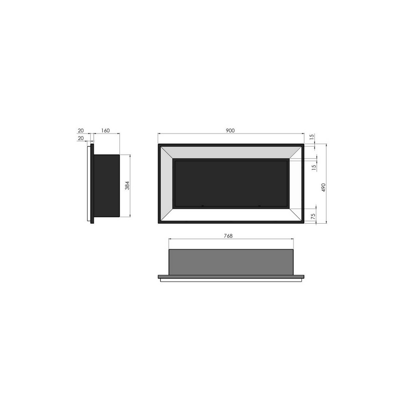 Bioethanol-Kamin SIMPLEfire Rahmen 900 schwarz mit 1 Glasscheibe.