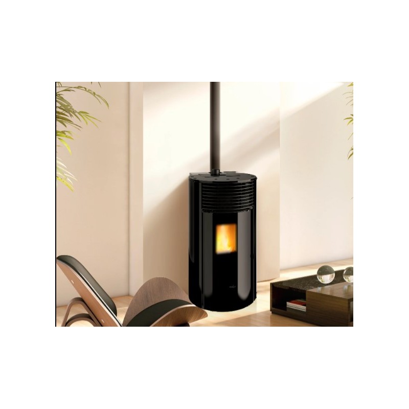 Der Ofen Runde Pellets Ferlux Helen Bietet hervorragende Leistung und spart gleichzeitig Energie in Ihrem Zuhause. Sein moderner Stil fügt sich perfekt in jedes Interieur ein und schafft eine warme und komfortable Atmosphäre. Es heizt perfekt große Räume bis zu 150m3.