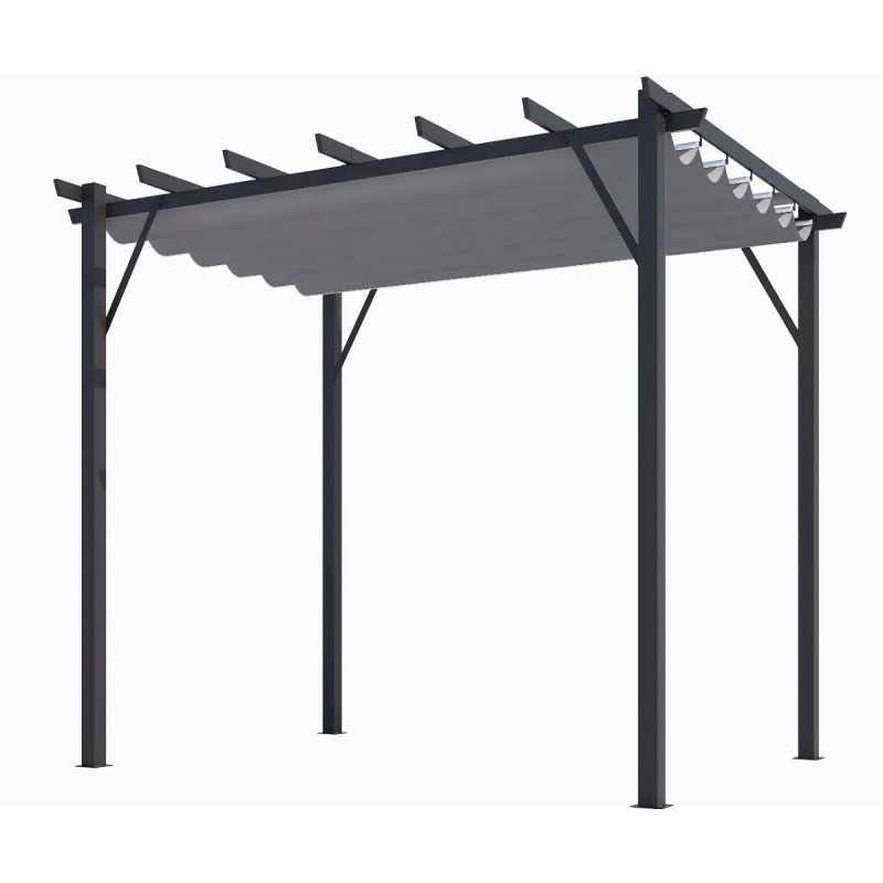 Dieses Pergola-Modell aus anthrazitgrauem Aluminium von 12m2 grauen Leinwand, hergestellt aus PVC-Doppel-Polyester von 280gr/m², anti-faltbar.