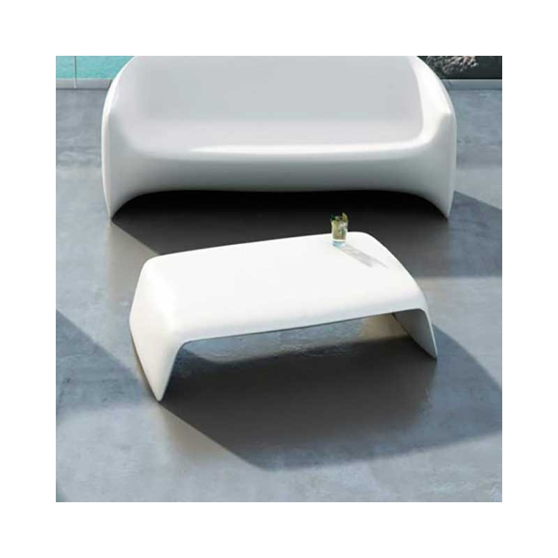 Gartenmöbel Blow by Vondom bestehend aus einem Sofa, einem Sessel und einem ultramodernen Couchtisch für drinnen und draußen.