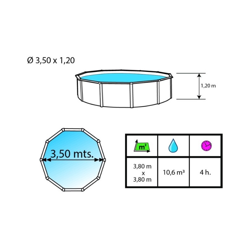 Eigenschaften des Pools 350xH120 cm.