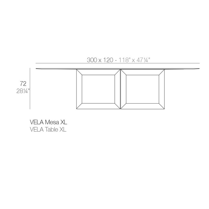 Vela XL Esstisch mit doppeltem Mittelbein von Ramon Esteve Vondom für den Außenbereich und den Innenbereich.