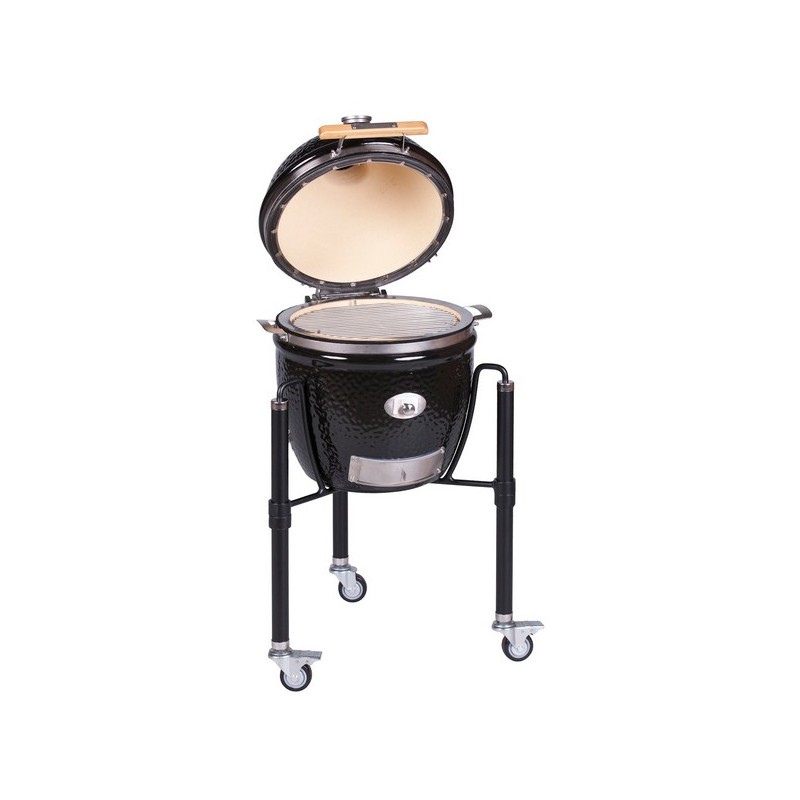 The Kamado Junior Pro 2.0 Monolith is a compact barbecue for 4-6 people and offers you the pure taste of a charcoal fire. It is equipped with a 3-wheel trolley and a 33 cm cooking surface.
