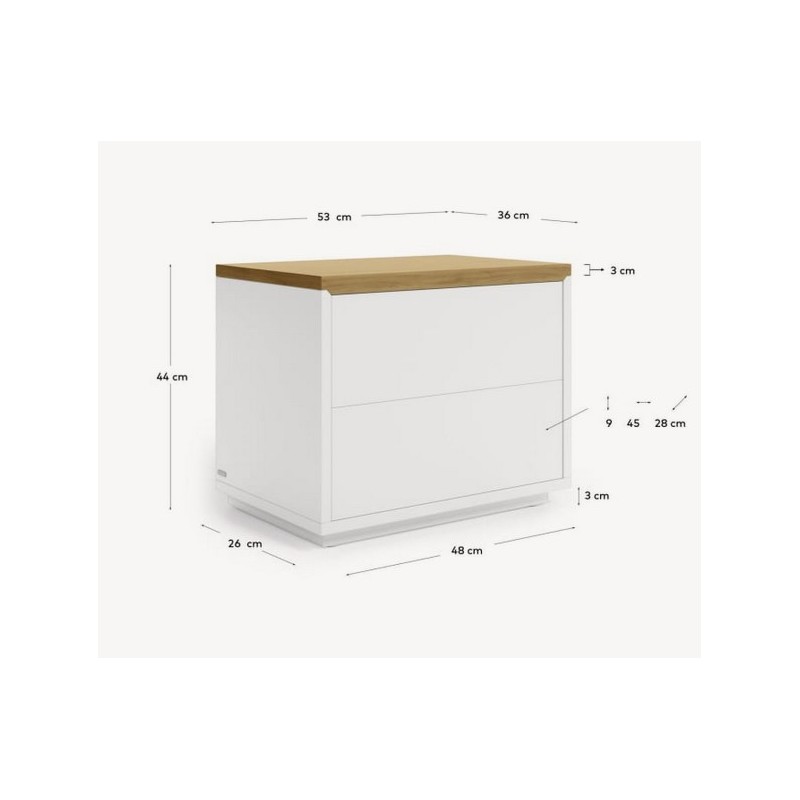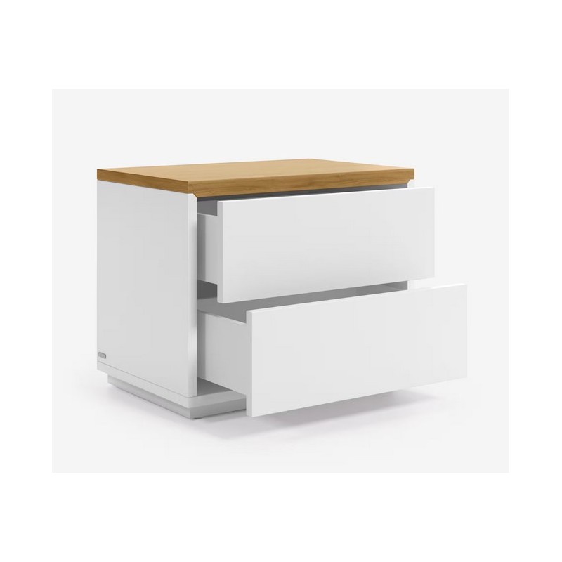 The Bali bedside table is the perfect combination in oak veneer and structure in white lacquered.
