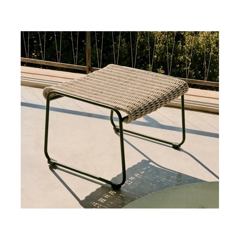 Rina Garden Footstool in Green Steel and Ecru Grey Rope VeryForma