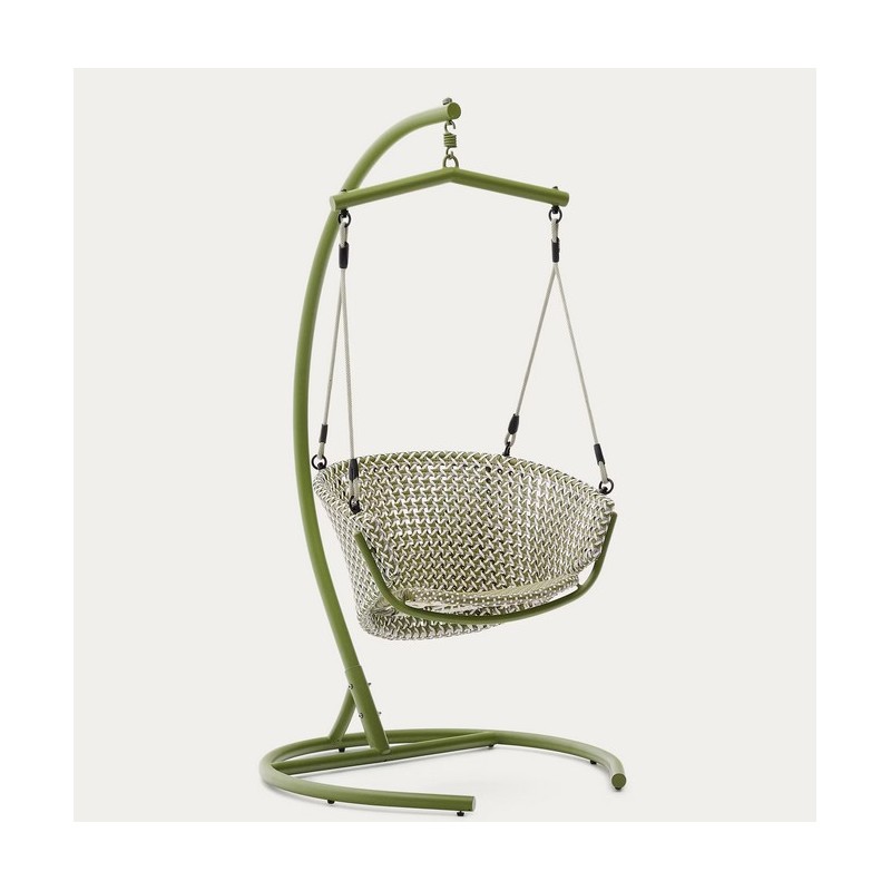 Aliga hanging chair in aluminum and green rattan VeryForma