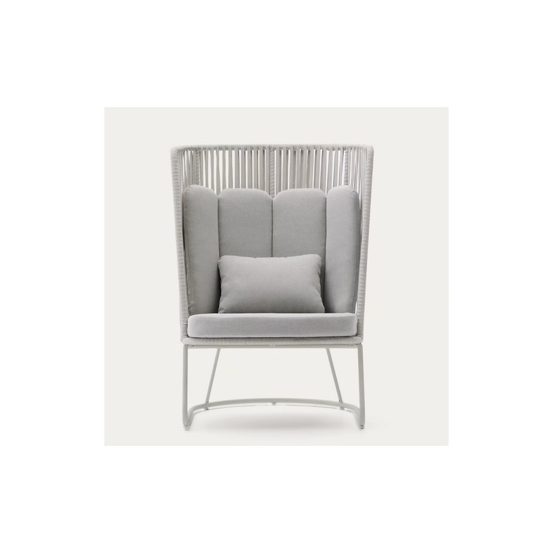Saco outdoor armchair with high backrest in rope and light grey galvanised steel. Suitable for outdoor use. Seat height 43 cm.