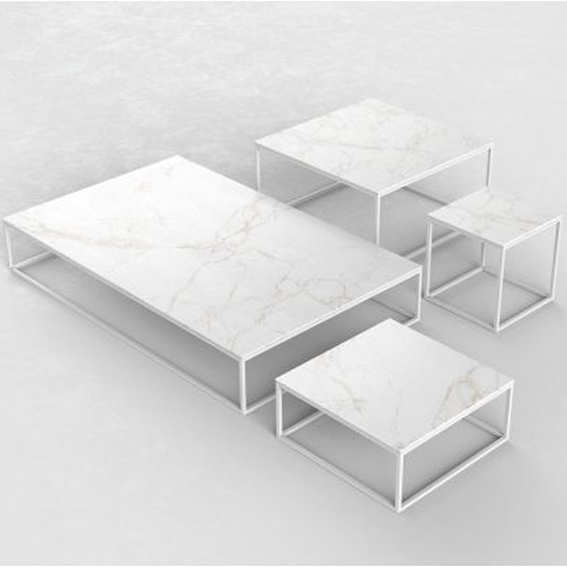 The contemporary Suave square coffee table is also incredibly resistant thanks to its aluminum legs and Dekton top, which has many advantages. It is composed of 100% mineral materials: glass, quartz and ceramic particles, compressed and heated to high temperatures. This material gives it great resistance to thermal shocks, intense heat (boiling water, dish coming out of the oven), scratches, and also UV. In addition, its natural components make the contemporary Suave square coffee table a hygienic table, easily washable with soap and water. Thus, the Suave coffee table adapts perfectly to all your environments, indoor and outdoor.