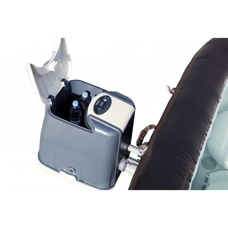 Equipped with a pump that quickly inflates the spa, warms the water, manages filtration and controls the massage system, this spa is both easy and convenient. The pump is easily accessible from inside the spa and has cup holders for drinks and snacks. A ChemConnect™ diffuser is also included, it maintains clean and healthy water by evenly dispersing the appropriate amount of chlorine. Finally, the Miami Spa comes with an insulating blanket that retains heat when not in use, while preventing dust and debris from accumulating on the water.