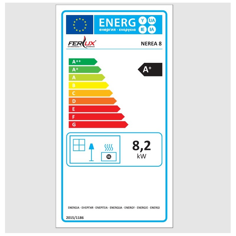 The Ferlux 8Kw Nerea Pellet Stove with Minimalist Design that makes it unique and special and allows it to fit into your environment. Heating volume up to 375m3. Efficiency: 94%.