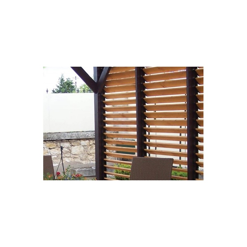 In order to get the closure of a side wall we propose clear-tracked breezes with orientable wooden blades to be fixed between the posts. The system allows to play with the climatic conditions and the closure to protect from the sun with ease by taking the principle of the orientable blades of the Venetian blind. This system is manufactured in France and patented. The steerable blades are made of 95 x 19 mm section wood. This gives the system wind resistance and durability over time that is second to none with other existing systems.