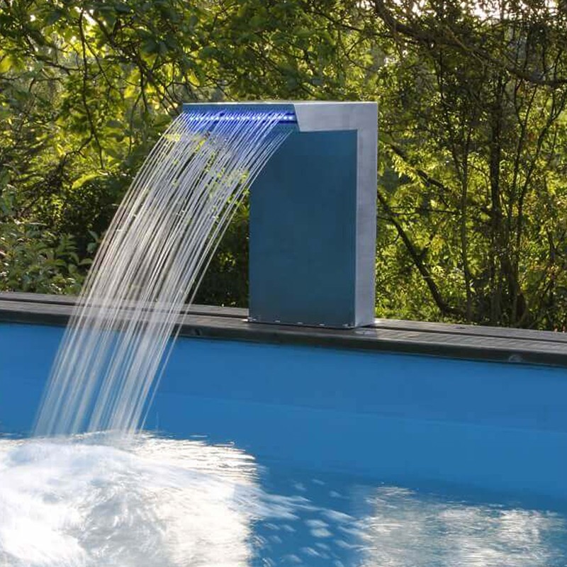 Add a touch of well-being and relaxation to your pool with this design and elegant waterfall. Designed entirely in stainless steel, it is resistant to the chlorine used for the treatment of the pool and the quality of the materials used guarantee you an excellent resistance over time. From the discharge of the filtration, the water slide produced is uniform and regular for an aesthetic rendering. Equipped with a series of 20 LEDs, the Straight waterfall allows you to illuminate the pool with a pleasant bluish light. Comes with the necessary accessories for the connection.