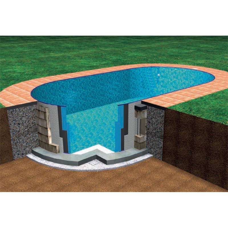 The Ibiza pool must be buried and cannot be installed above ground. The installation of the basin requires a concrete slab positioned beforehand, after earthworks of 2 perpendicular walls of the elongated oval walls of the basin.