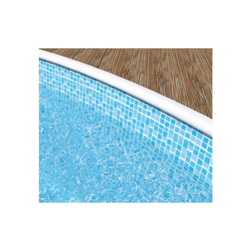 The walls of the Ibiza Azuro 800x416 H150 pool are made of thick steel elements coated with a layer of zinc. In addition, the walls are protected by a layer of anti-corrosive plastic and therefore guarantee the long-term life of the pool. The liner is of superior quality and ensures the tightness of the basin and is resistant to UV rays.