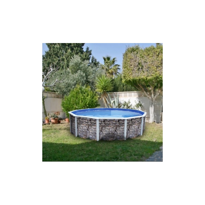 Above ground pool TOI Round Grey Stone 1.20 m high stone decoration with ladder, Skimmer, Liner, profiles, sand filter.