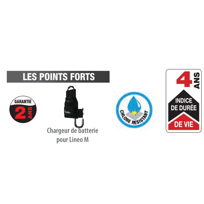 The 70° swivel brush and its telescopic handle of 150 to 250 cm, will allow you to reach hard-to-reach parts and every corner without difficulty. Secure, the Lineo M electric brush has a 2 kg marine battery that guarantees its IP65 waterproofness.