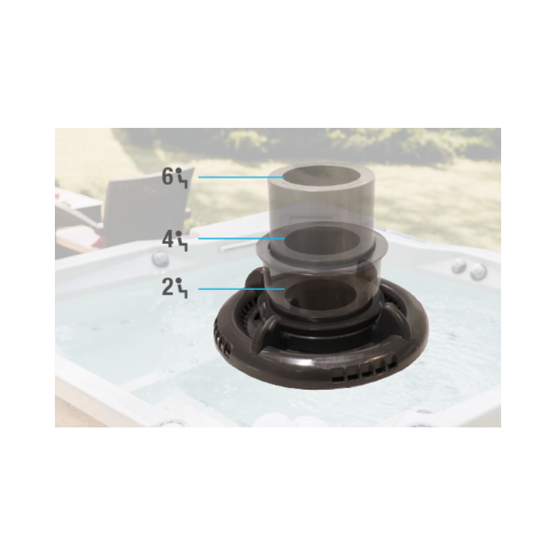 The floating skimmer technology ensures a perfect treatment regardless of the number of people in the spa and therefore stabilizes the water level.