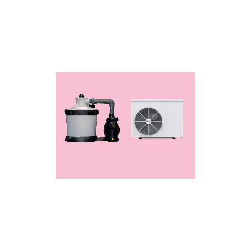 - water temperature of 26°C. It is delivered with a bypass and 9 m of piping to move the heat pump 3.50 m from the basin and a 6m³/h P-GFI 400 sand filtration unit.