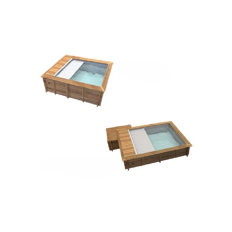 The connected Urban Swimming Pool square wooden with integrated automatic roller shutter.