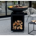 - Brasero sobre ruedas con parrilla de cocción, tapa y tapa protectora.