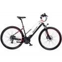 La bicicleta cross para mujer con asistencia eléctrica y uso universal MTB Cross 4.4 Blanco y Rojo es ideal para tus paseos en terrenos ligeros o en carretera.