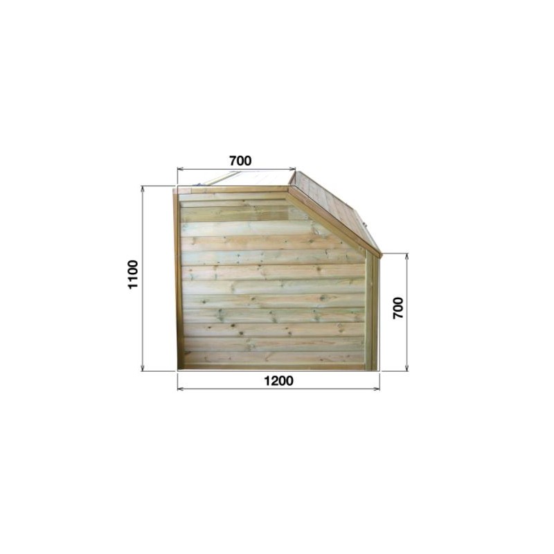 La sala técnica debe colocarse en soporte plano (no tiene base). También debe estar unido a una pared (no tiene fondo). La huella es de 1,75 m de altura cuando la tapa está en posición abierta