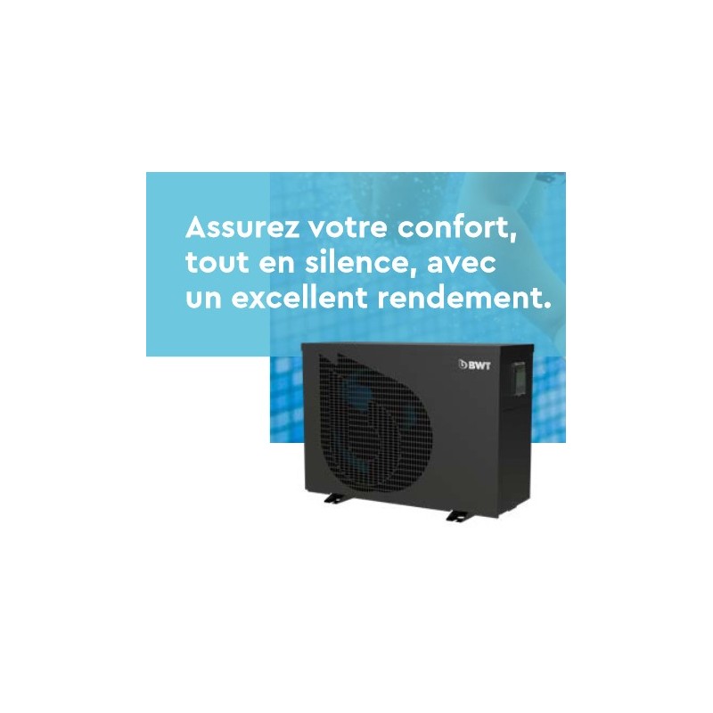 El Bomba de calor de la gama BWT Inversor Ofrece una amplia variedad de potencias para equipar piscinas de 15 a 100 m3 y funciona solo en modo de calefacción.