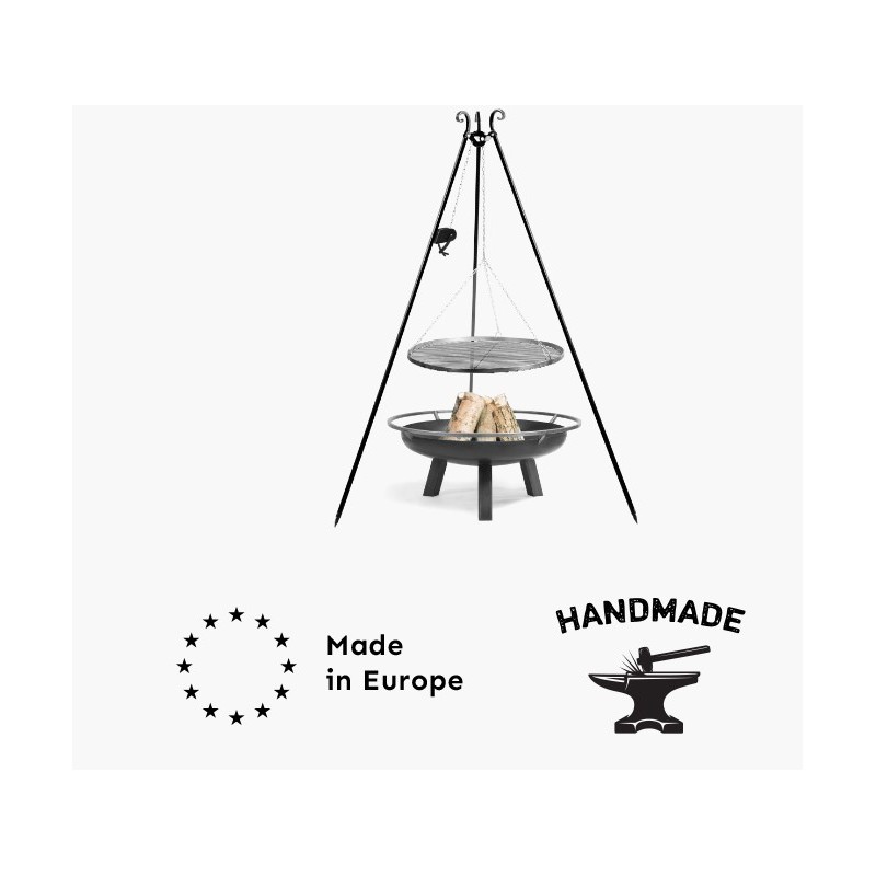 Brasero y trípode Porto 100cm Cook King con parrilla de acero inoxidable.