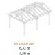 Los 6 postes de la Cochera están hechos de abeto norte laminado. Se planifican en los 4 lados y se achaflanan. El nivel máximo de humedad es del 15% y tienen una sección de 12 x 12 cm. Las piezas vienen con placas de metal que permiten que la cochera se fije en un piso duro.