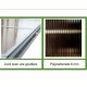 Las láminas de policarbonato se deslizan en los mástiles laterales y están unidas a la estructura por una barra lateral.