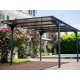 Los cuatro postes de aluminio deben fijarse al suelo (sobre cimientos en pernos o losa de hormigón) con placas de anclaje proporcionadas. El techo compuesto por láminas de policarbonato de última generación da un atisbo de luz y reduce la transmisión de calor. Se beneficia de un tratamiento contra los rayos ultravioleta.