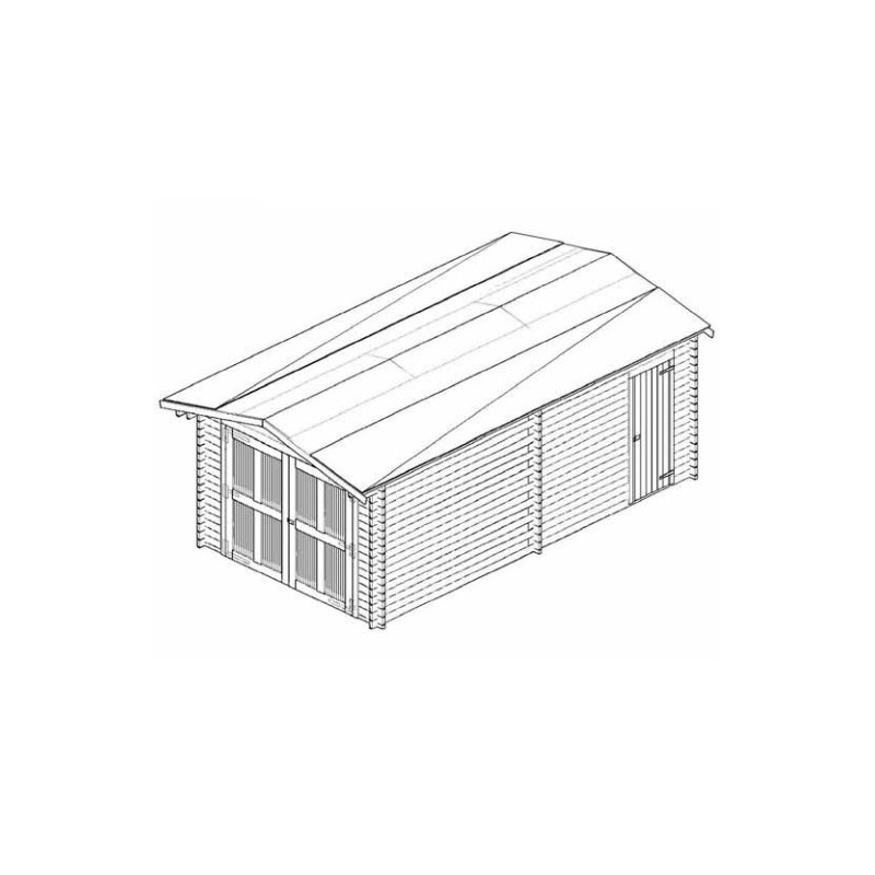 Garaje de madera maciza Habrita 24,23m2 en tablones doble ranura 60 mm.