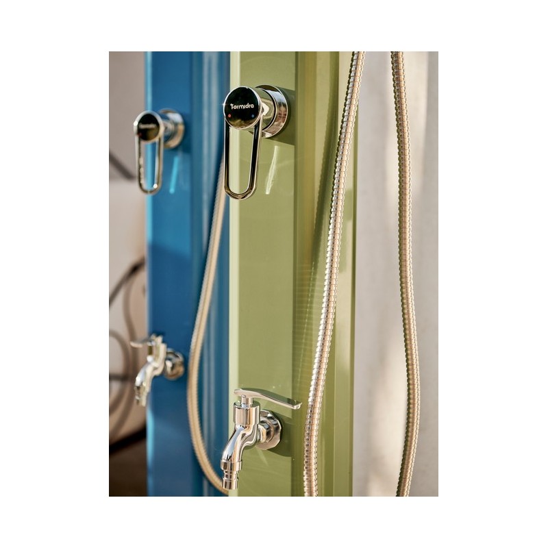 Estéticamente agradable y colorido, el Ducha solar Formidra es una pieza fuerte en tu jardín.