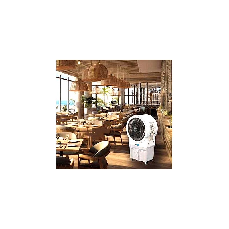 El Brezza 70 EVO es útil para enfriar espacios abiertos o semiabiertos localizando el frescor en terrazas, carpas, sombrillas, con la máxima eficiencia y ahorrando energía. Superficie renovada 100/120 m2.