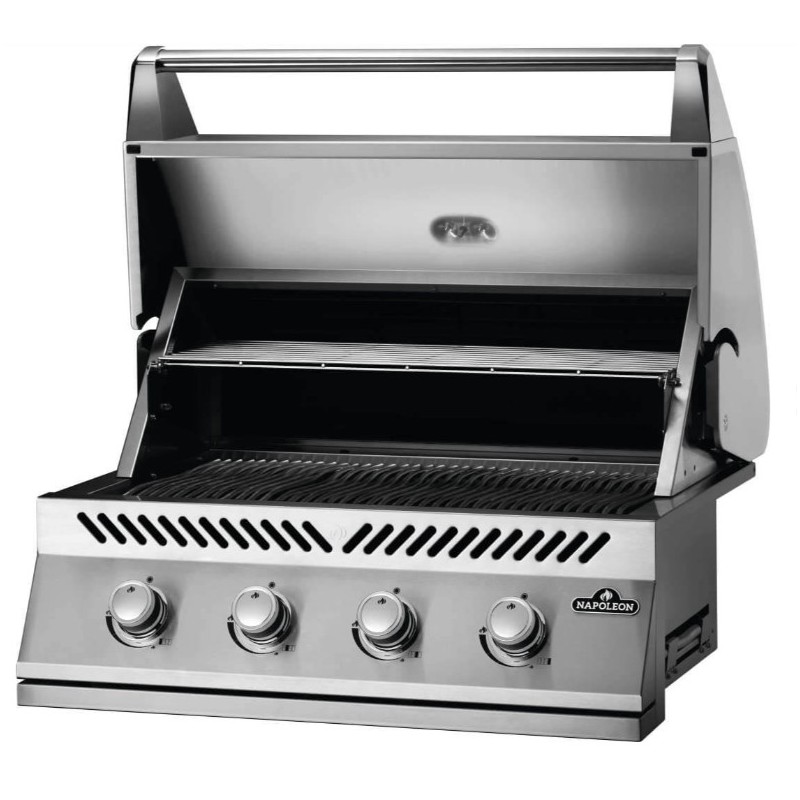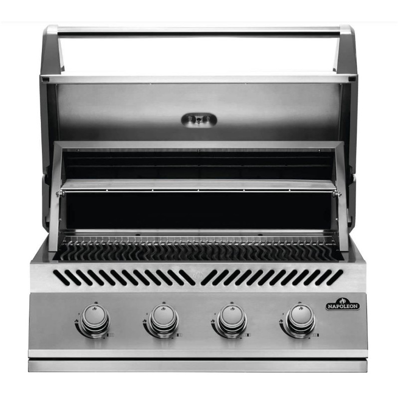 Una barbacoa bien equipada Barbacoa de gas empotrada Napoleon 500 Bi Series 32 con 4 quemadores de acero inoxidable. :