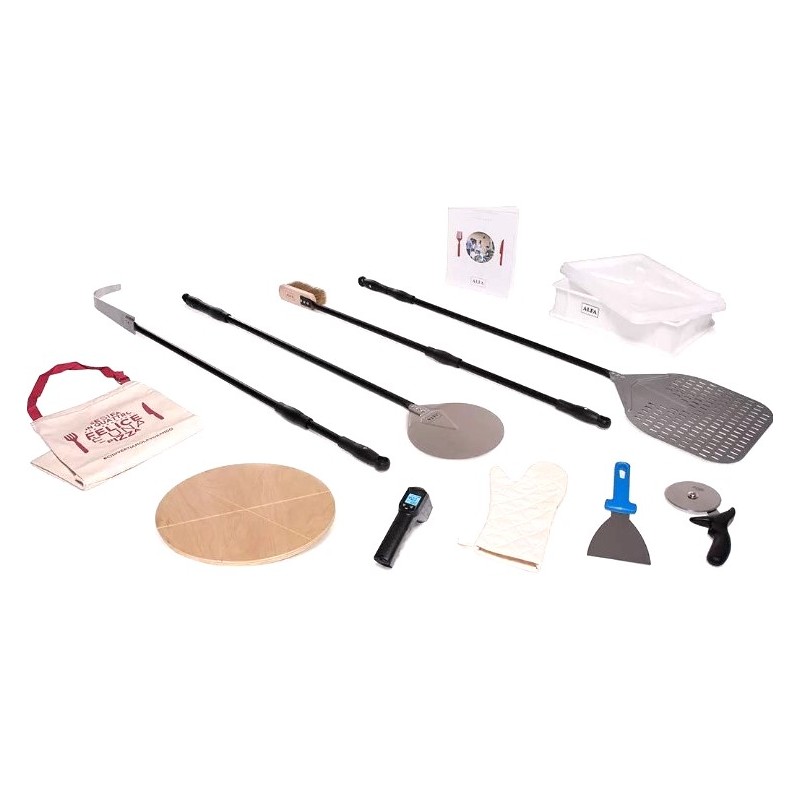 -El Kit Pizzaiolo para horno de pizza Alfa es un conjunto de herramientas necesarias para usar el horno en casa.