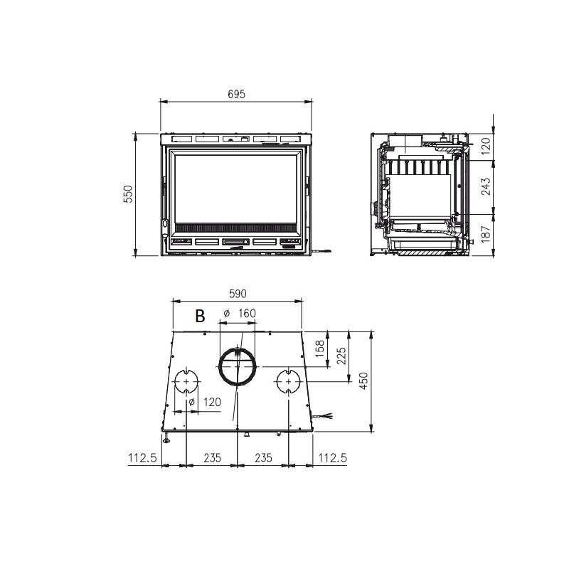 Dimensiones: L 695 x H550 x D 450 mm