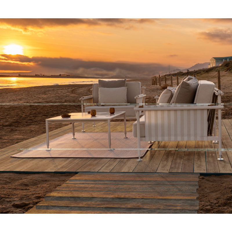 El Mesa de centro HamptonS destaca por su estructura de aluminio, lo que la hace ligera y robusta, ideal para su uso en exteriores.