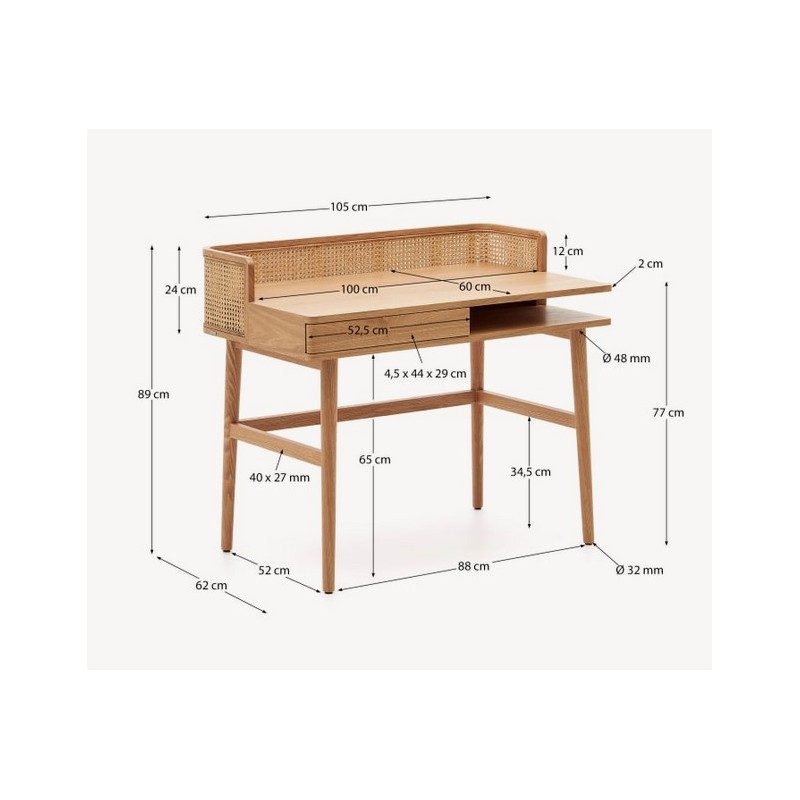 Mesa de escritorio de madera de fresno y ratán 105x62 Axi VeryForma