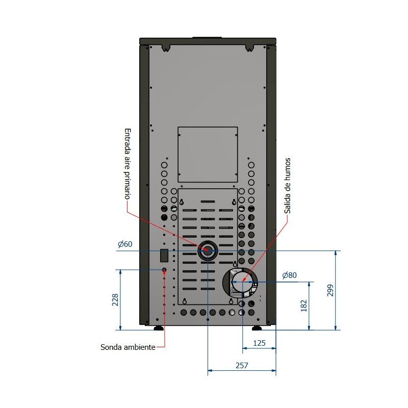 Este sistema regula automáticamente la cantidad de aire necesaria para conseguir una combustión perfecta en función del tipo de salida de humos instalada, la altitud de la instalación sobre el nivel del mar y el tipo de pellets de madera utilizados.
