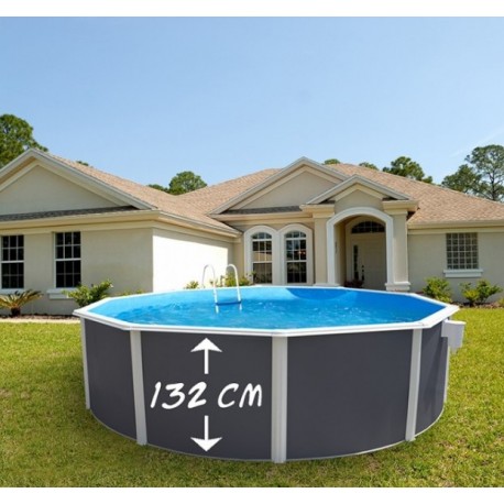 Piscina elevada TOI redonda Magnum Antracita 350x132 con su completo kit listo para nadar.