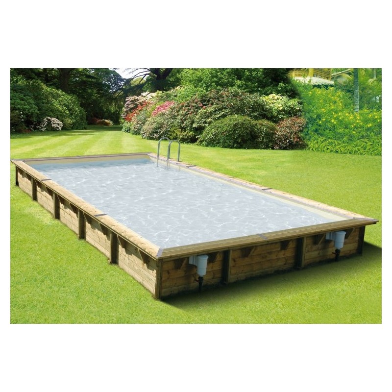Piscina de madera Ubbink Azura 650 x 350 en forma de rectángulo. Se entrega en un kit completo que incluye estructura y filtración.
