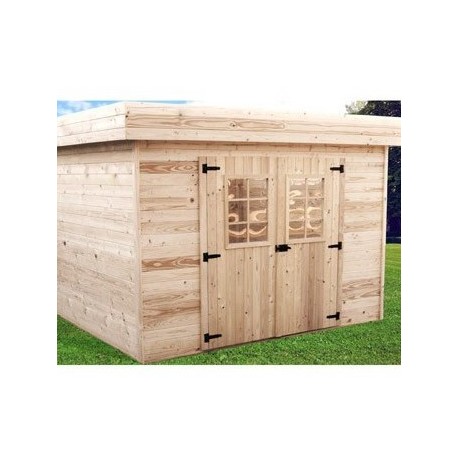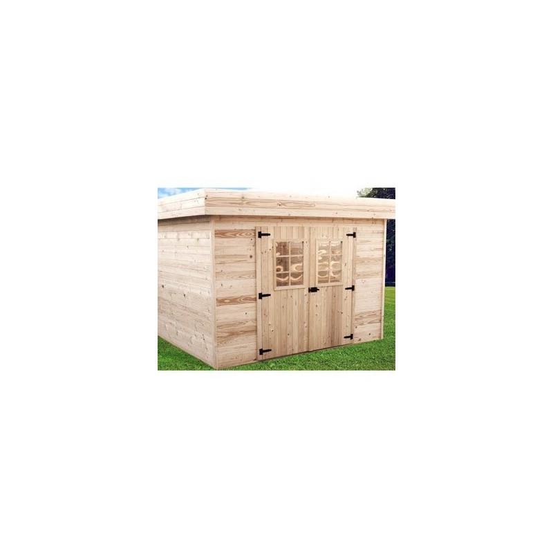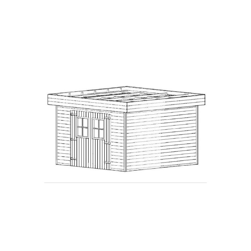 Cobertizo de jardín de madera 14,75m² en madera maciza de abeto y techo plano en acero Habrita.