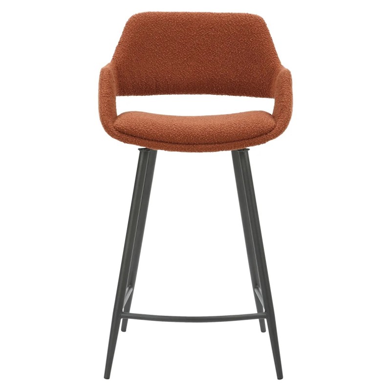 La silla H65cm Eme Worktop en tejido rizo VeryForma Caramelo, con su reposapiés integrado para un soporte adicional y su base de metal negro ofrece modernidad a su interior.