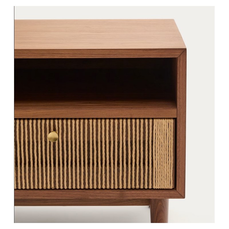 Mesita de noche y cajón de cuerda de madera de nogal 51x45 Ela VeryForma.