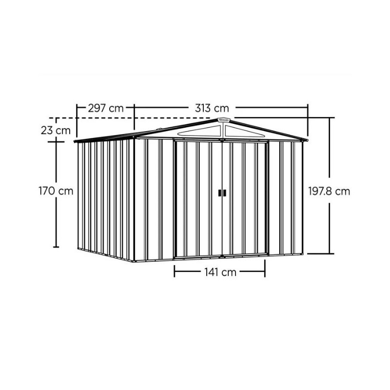 Abri de Jardin en Métal Habrita 313x297xh198 avec Double Porte Coulissante